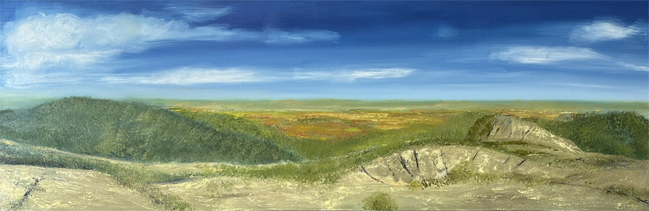 I always loved art at school but for forty years I pursued a scientific career. During that time I collected paintings on a regular basis from all over the world. When I retired and moved from Perth to Albany ten years ago I met many of the wonderful artists residing in our beautiful part of WA. I learnt that many of them only started painting after retiring and they encouraged me to bare my soul and try painting myself! I enjoyed one of Andy Dolphin’s beginner’s classes at Albany Summer School and then eighteen months ago I joined one of Barry Mackie’s beginner’s classes in Mount Barker. It’s been with his generous guidance and encouragement that I have continued with my oil painting. There is nothing I find more fulfilling than spending time painting in my own studio area or with my fellow artists either in Barrie’s studio or other locations. I particularly love our beautiful mountain country and all its flora and fauna that provides plenty of inspiration for me to continue my painting journey.